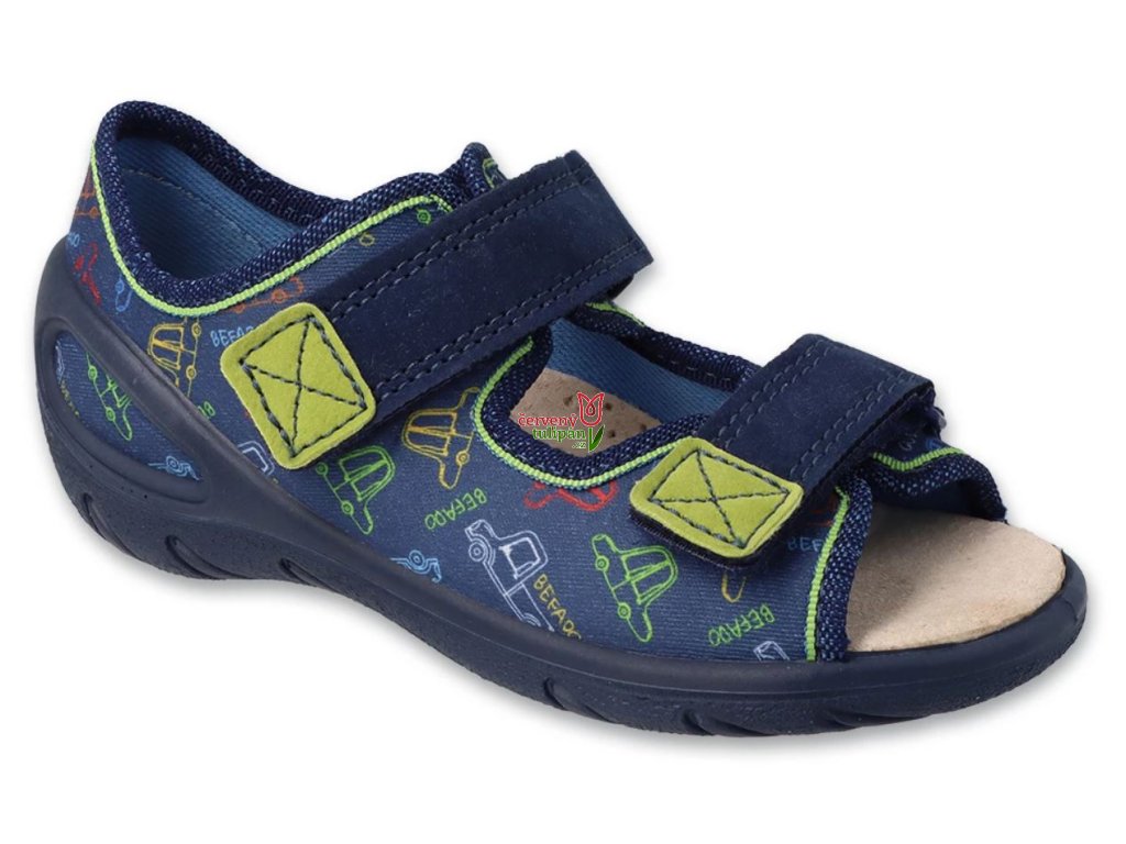 Bačkory papuče sandálky Befado Sunny 063X016 modré auta s koženou stélkou