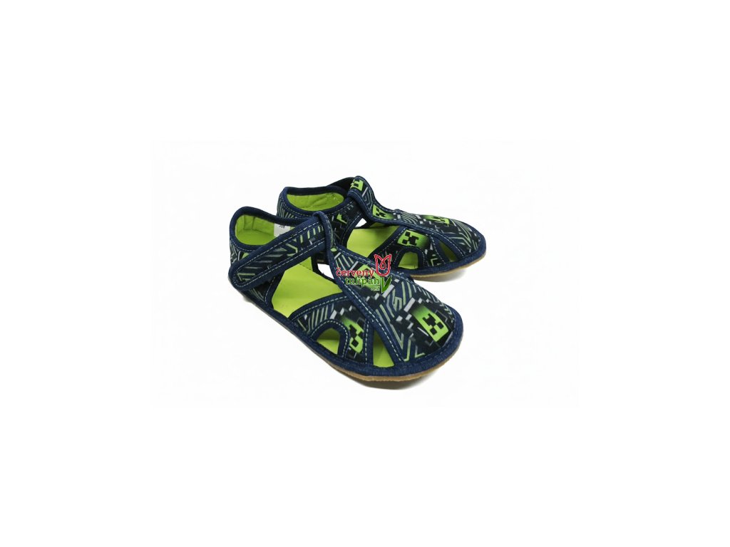 Bačkory přezůvky BAREFOOT EF 386 Craft modrozelené otevřené