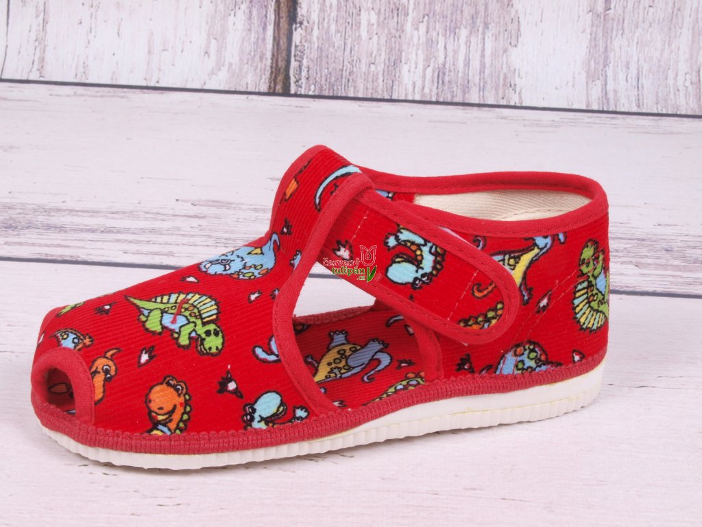 Bačkůrky papučky HP Čechtín 805 červené s dinosaury suchý zip