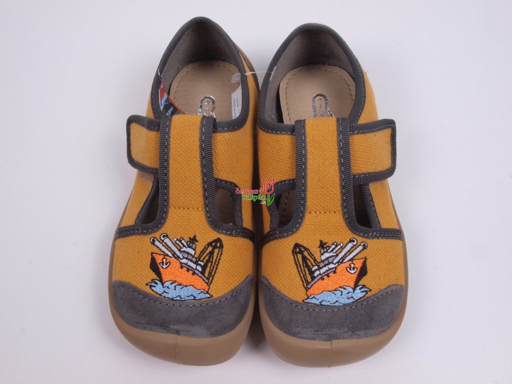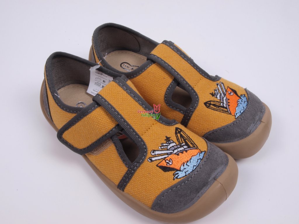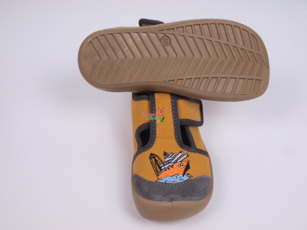 Bačkůrky plátěnky 3F 3BS3/13 bar3foot super flexi žluté s lodí barefoot