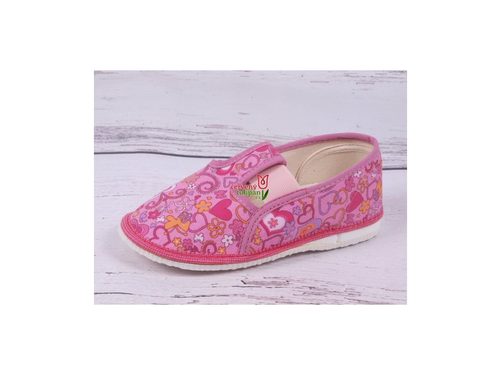 Bačkůrky papučky bačkory HP Čechtín 555 růžové se srdíčky a kytičkami