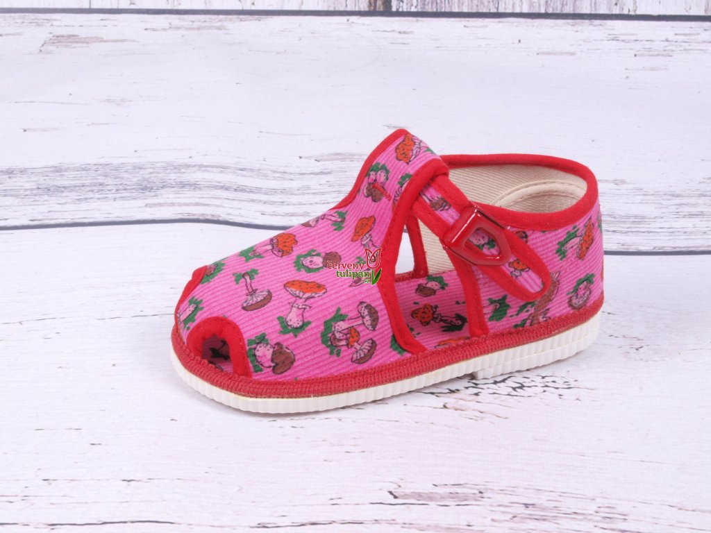 Bačkůrky papučky HP Čechtín 505 růžové se zvířátky a houbičkami