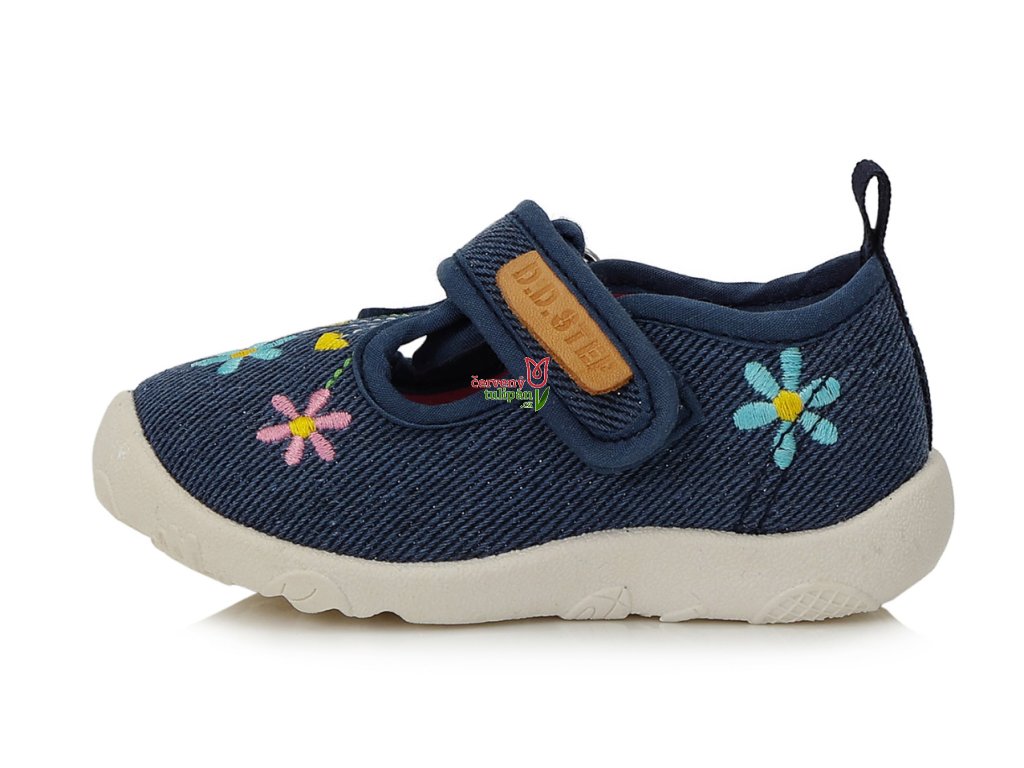 Plátěnky balerínky D.D.step CSG-41133 tm.modré džínové s kvítky