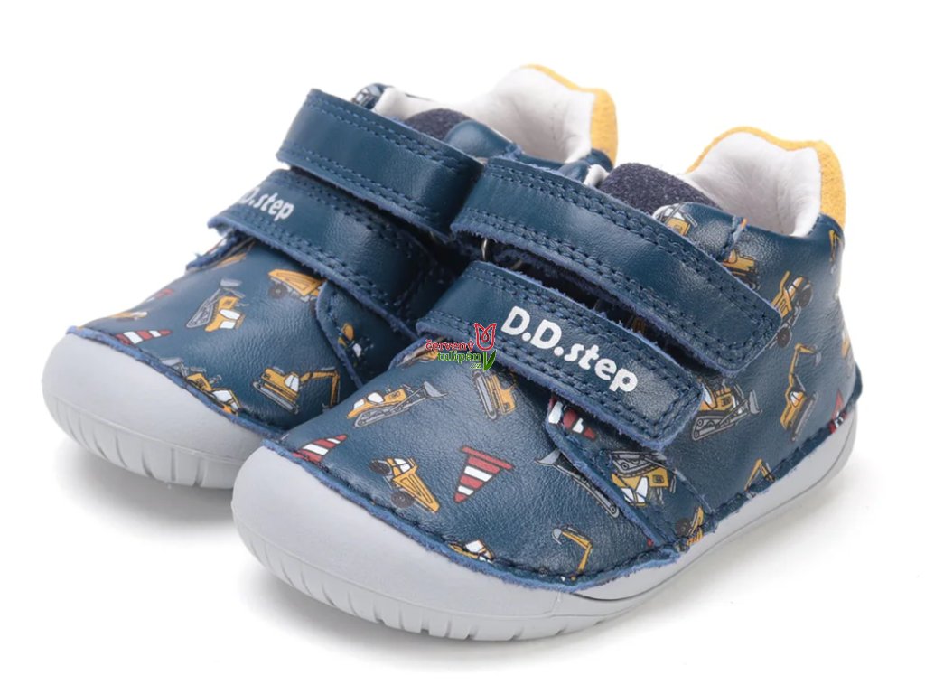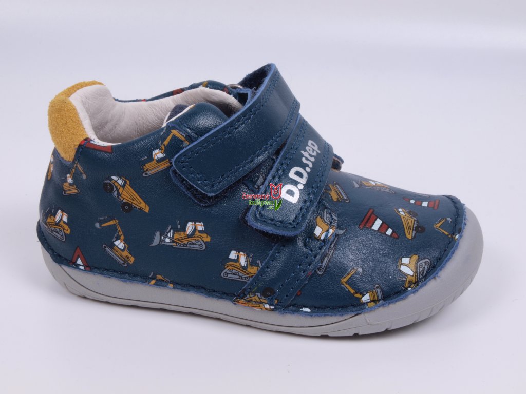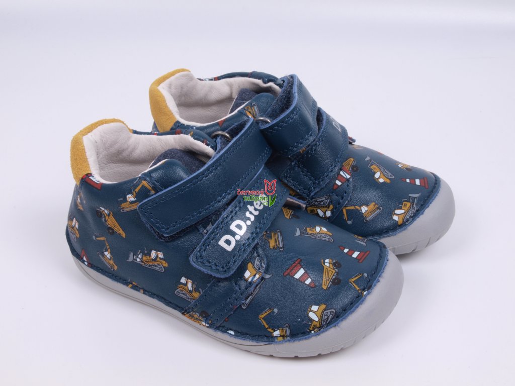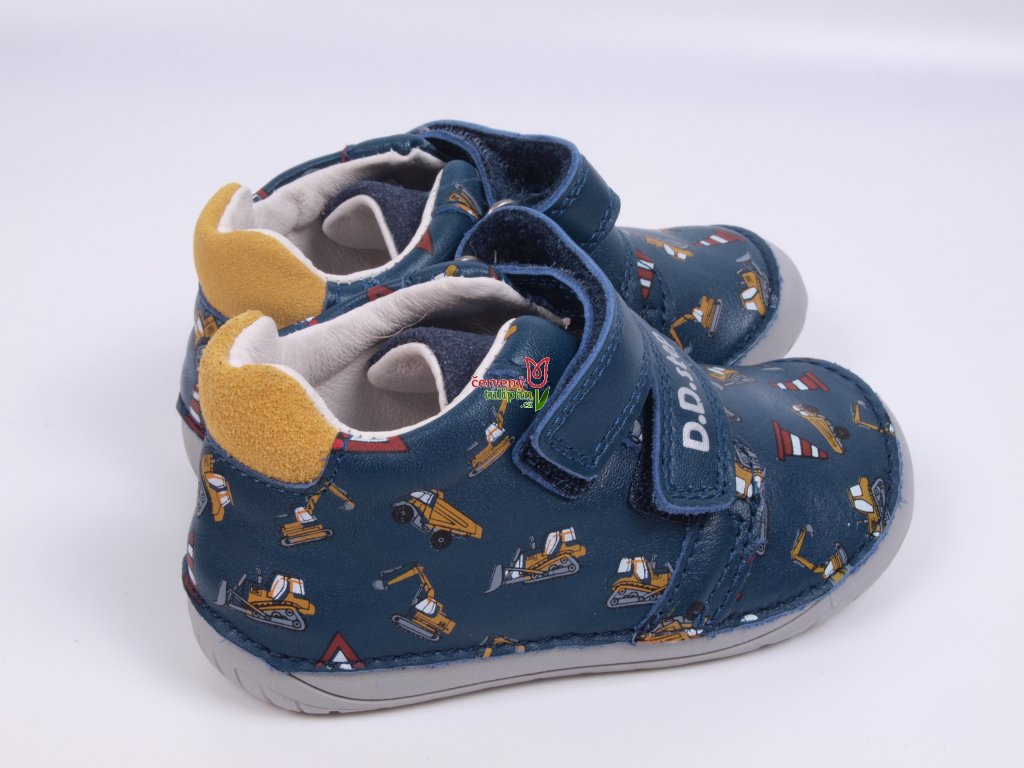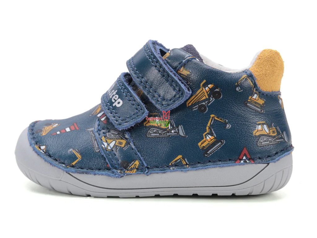 Celoroční boty obuv D.D. step kožené BAREFOOT S070-52480B tmavomodré se stavebními stroji