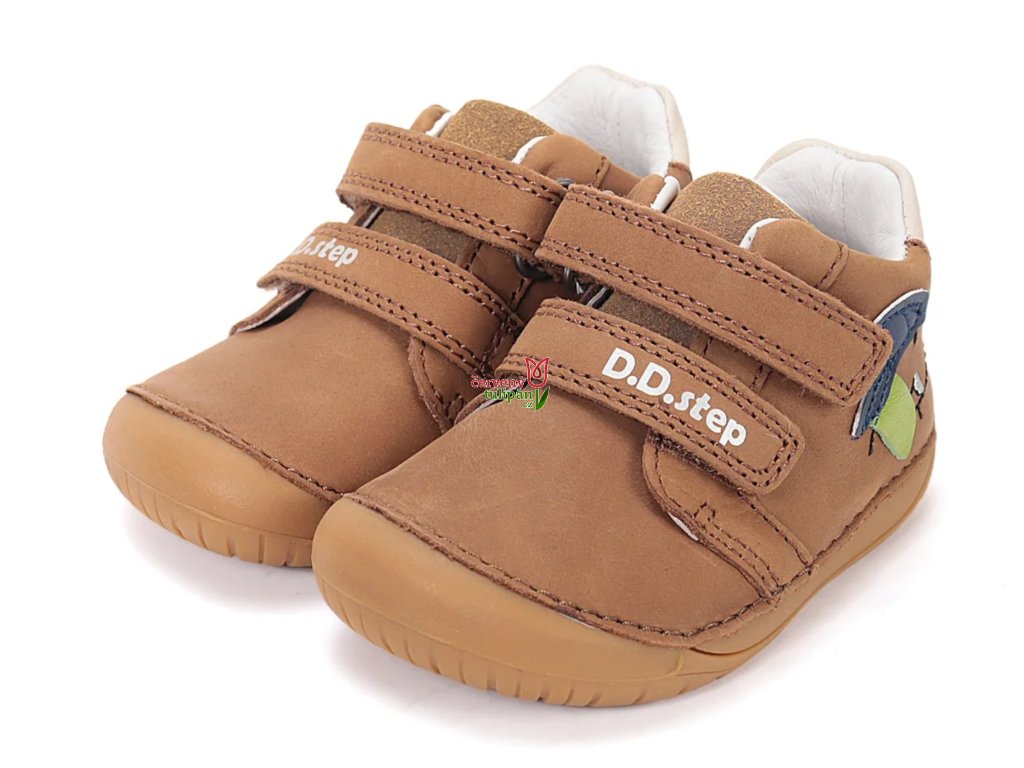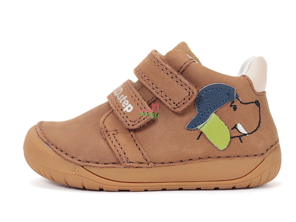 Celoroční boty obuv D.D. step kožené BAREFOOT S070-61533 hnědé s pejskem