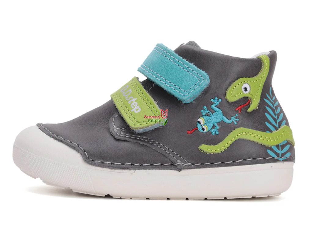 Celoroční boty obuv D.D. step kožené S066-51303A šedé s žabkou a hadem