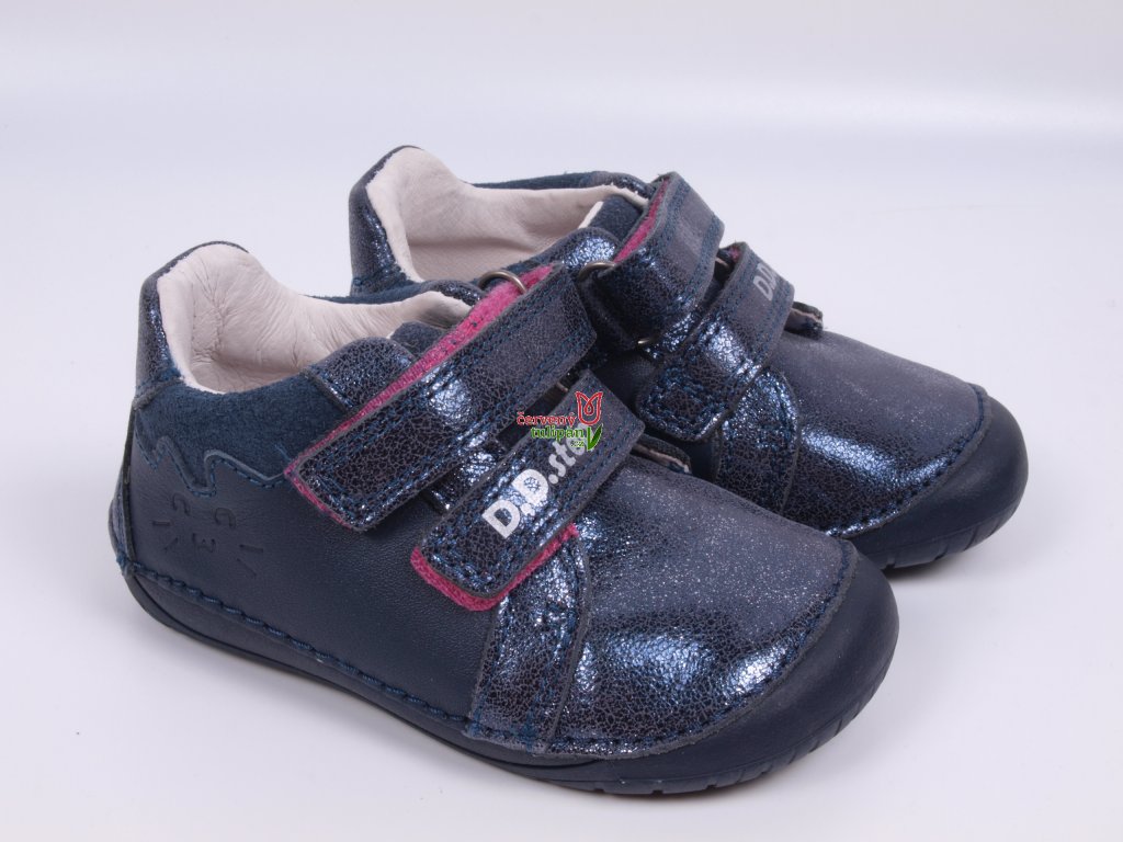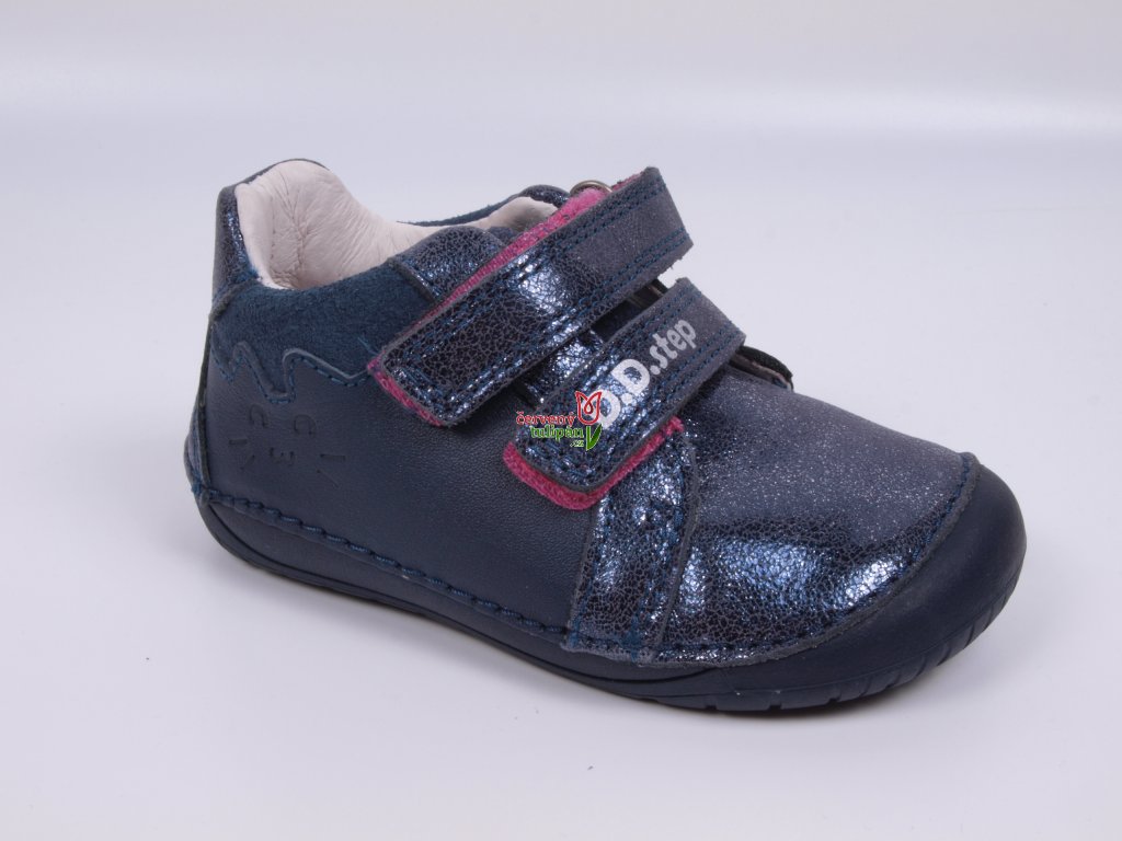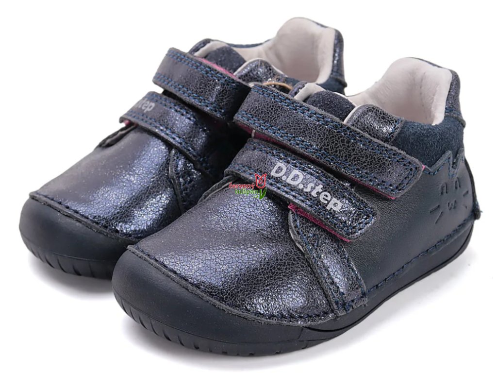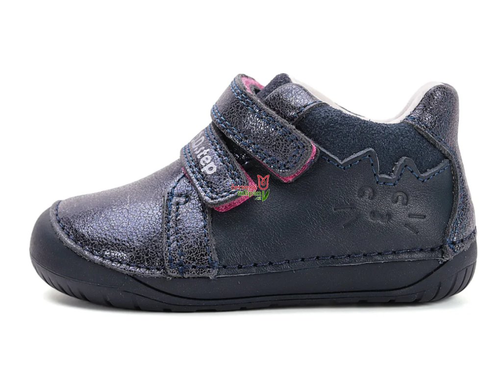 Celoroční boty obuv D.D. step kožené BAREFOOT S070-52778A tmavomodré s kočičkou