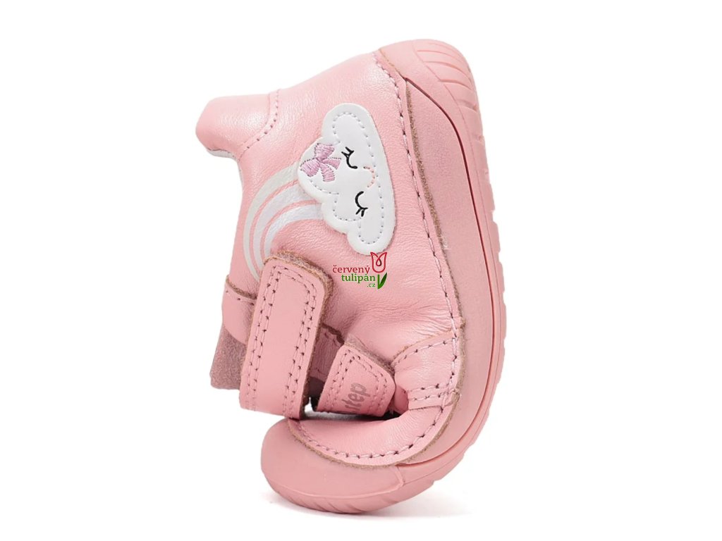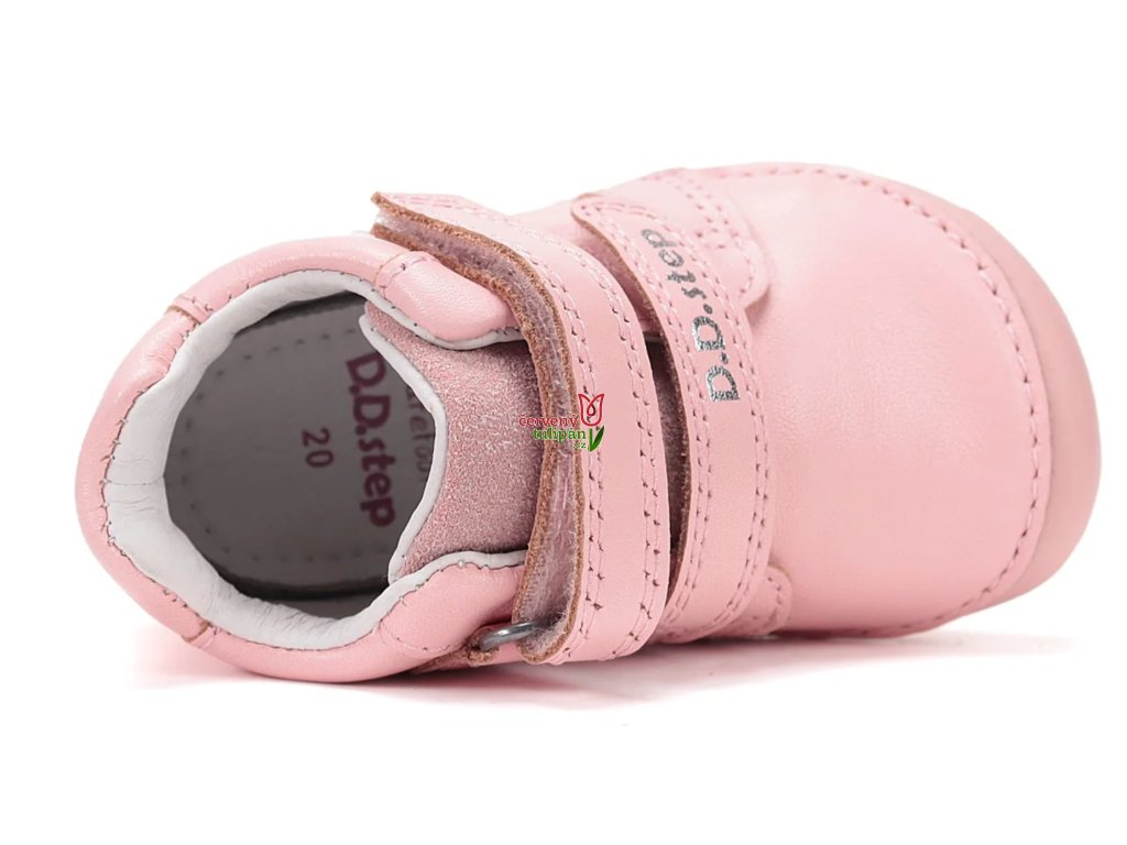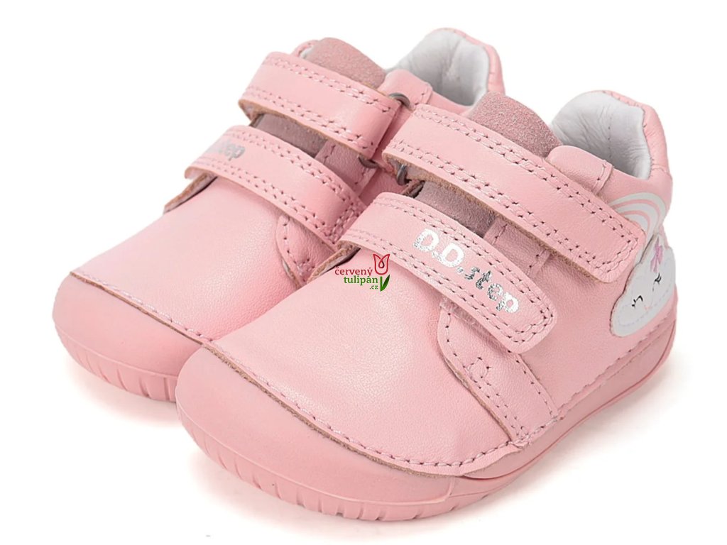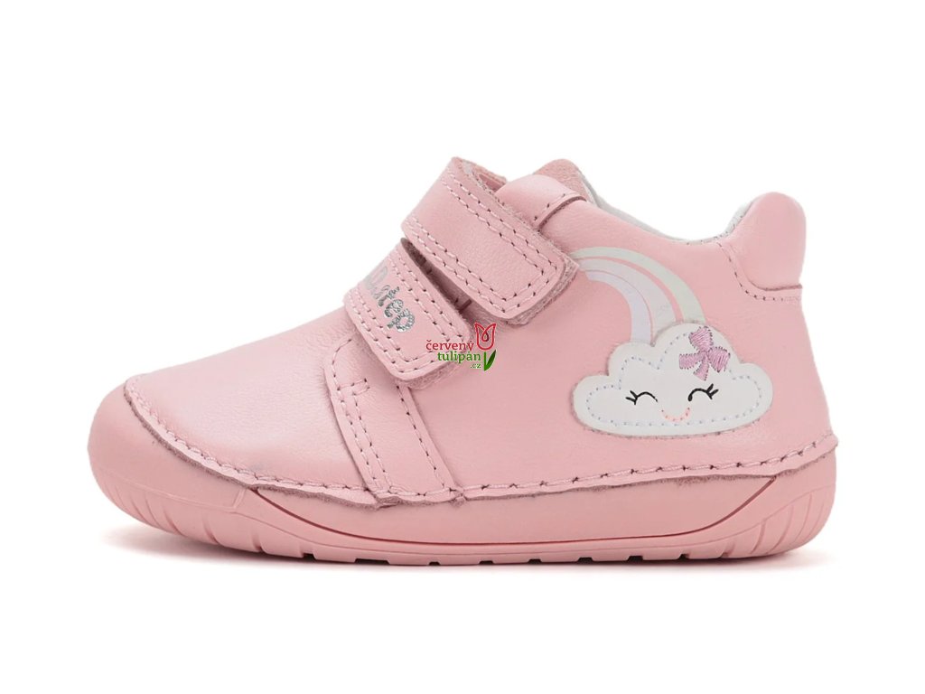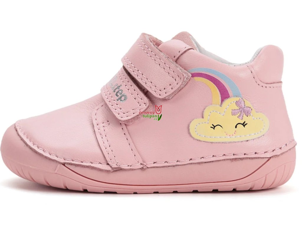 Celoroční boty obuv D.D. step kožené BAREFOOT S070-61244 růžové s mráčkem