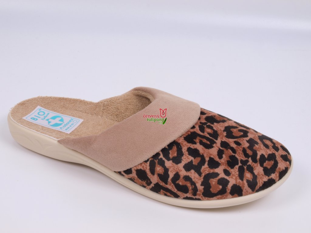 Damenhausschuhe ADANEX SARA 29813 Leopard mit beigem Besatz und geschlossener Spitze