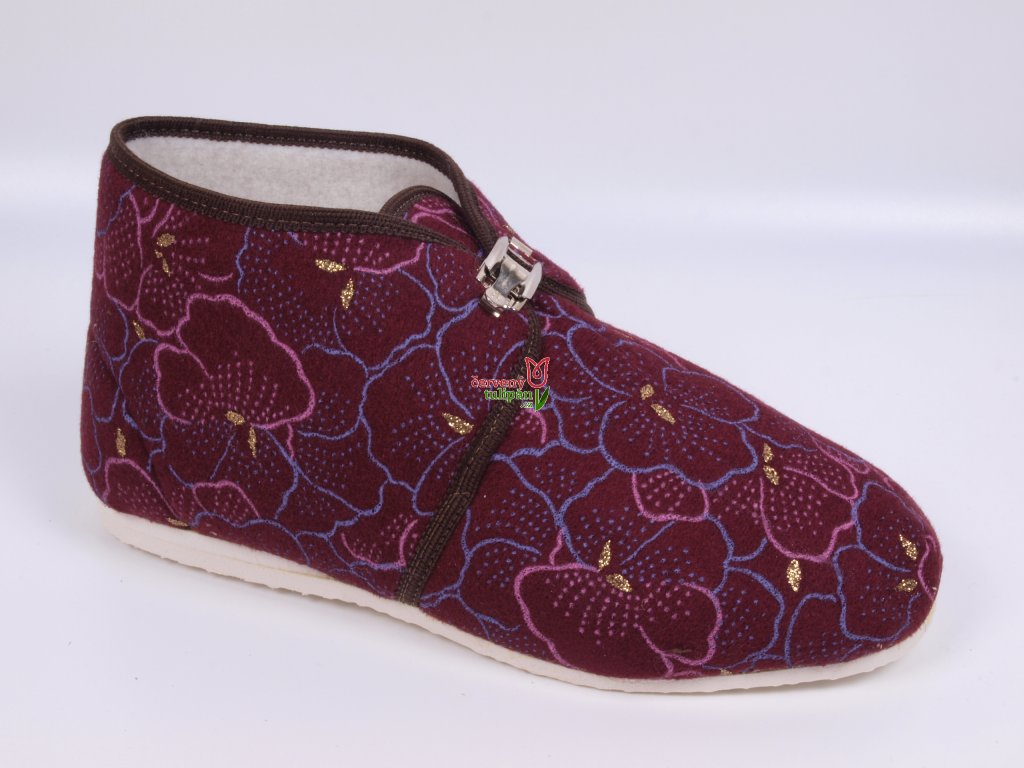 Hausschuhe BOKAP 063 Senioren höher mit Schnalle bordeaux mit Blumen
