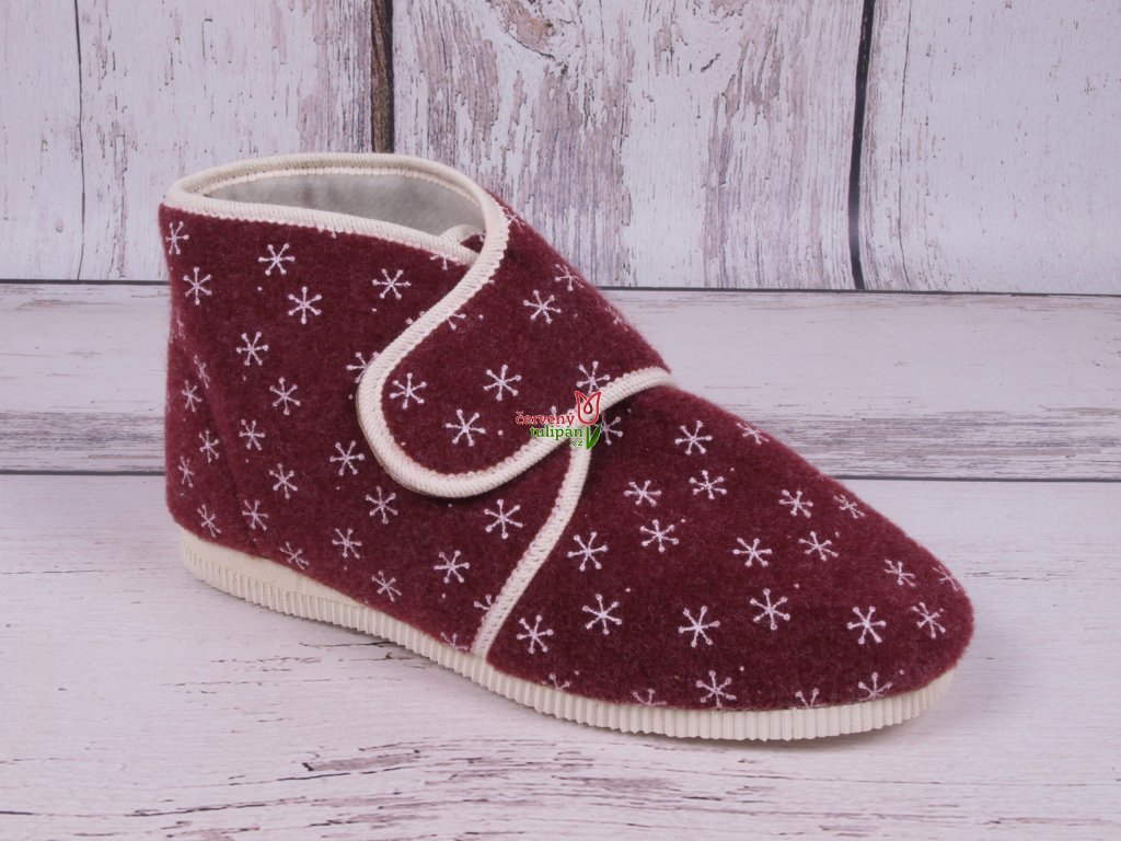 Bačkory papuče dámské Pegres 1036 důchodky vyšší vínové na suchý zip s hvězdičkami