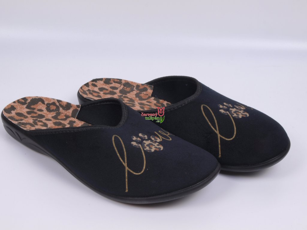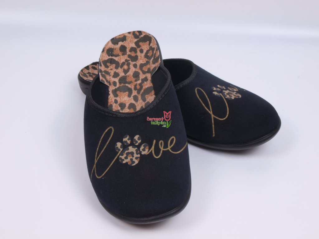 Dámské bačkory papuče ADANEX SARA 29983 černé LOVE s leopardním vzorem s uzavřenou špičkou