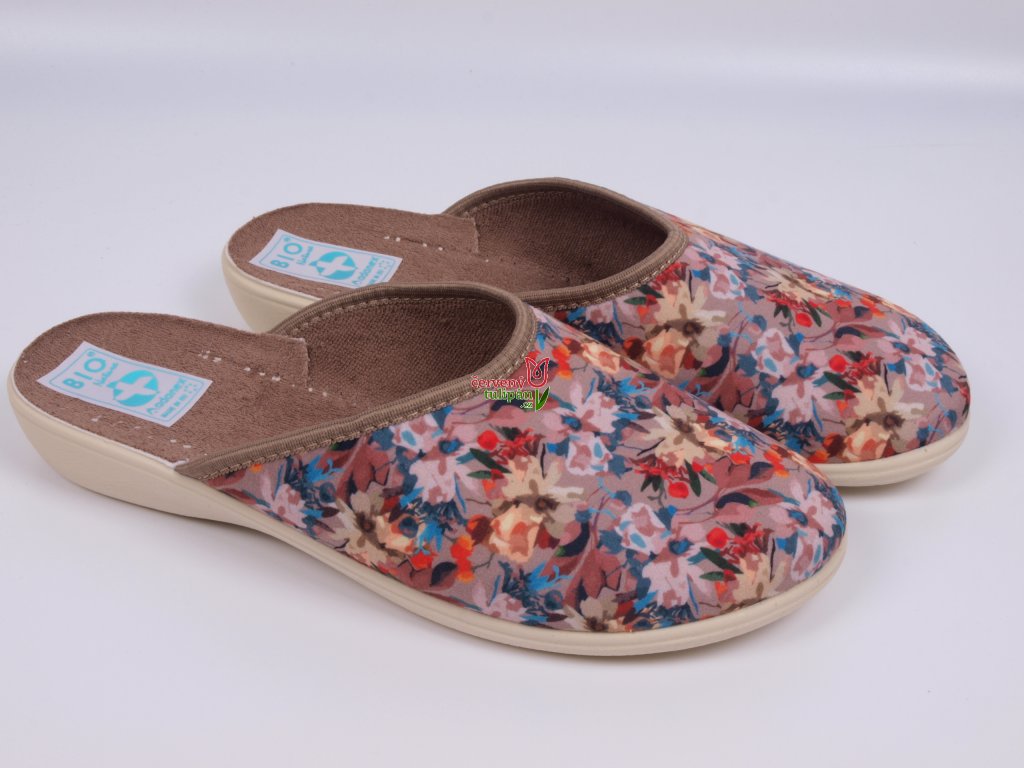 Dámské pantofle přezůvky ADANEX DIANA 29825 vícebarevné s květy plná špička