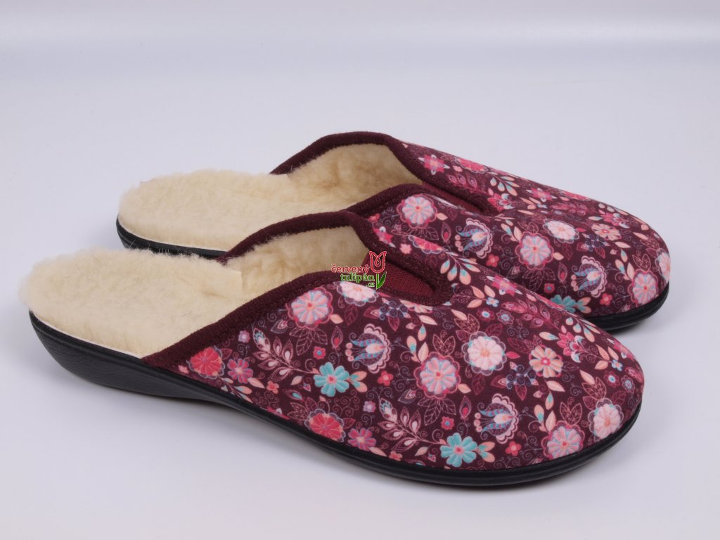 Dámské pantofle přezůvky ADANEX DIANA 29840 vínové s květy ZATEPLENÉ plná špička