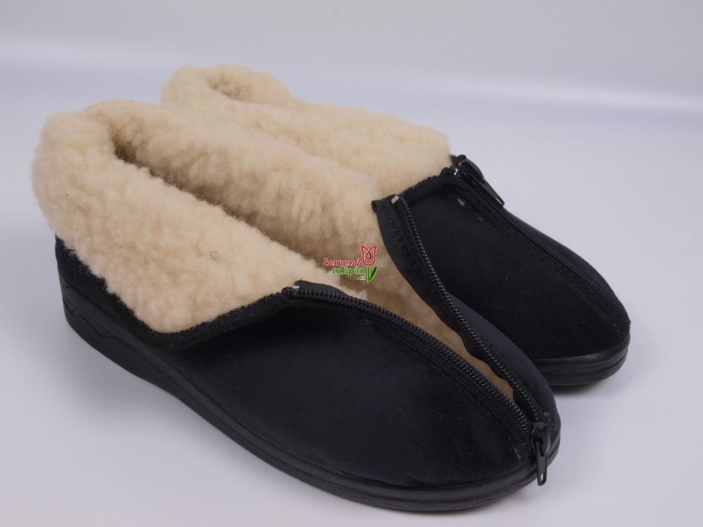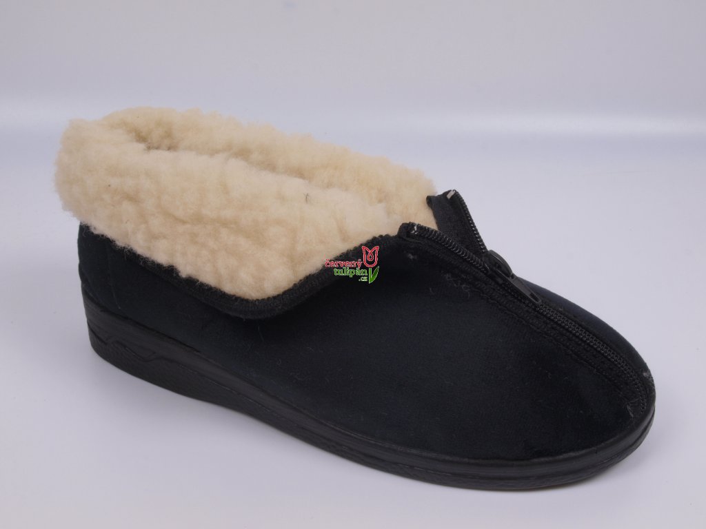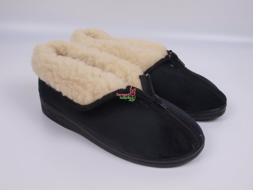 Teplé bačkory důchodky ADANEX 29898 černé zateplené ovčí vlnou
