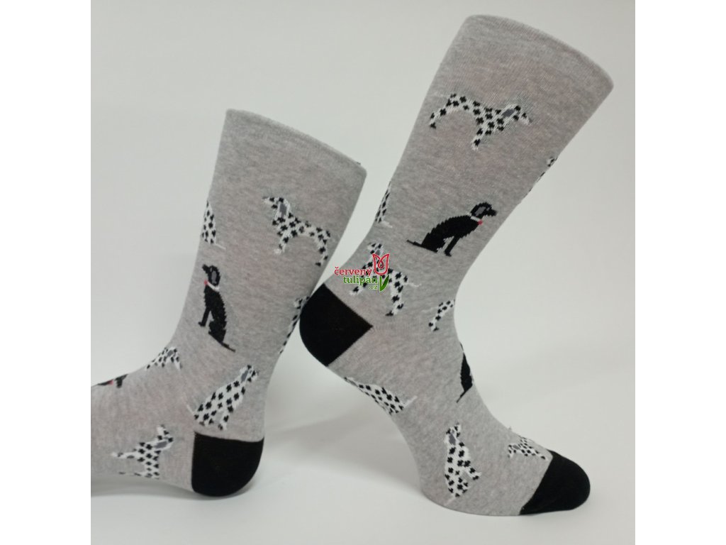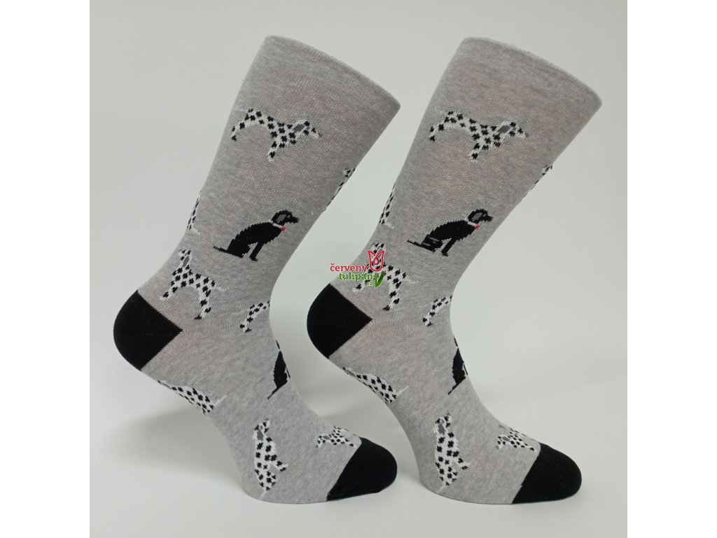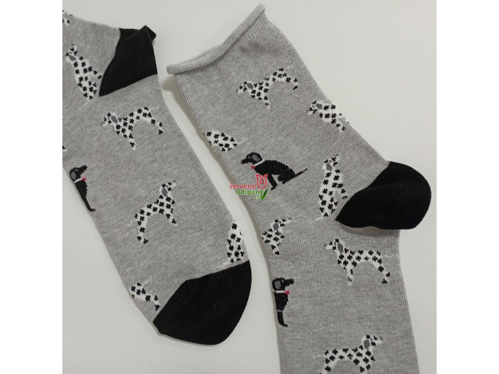 české ponožky TREPON DALMATIN šedé s dalmatiny s nesvírajícím ruličkovým lemem
