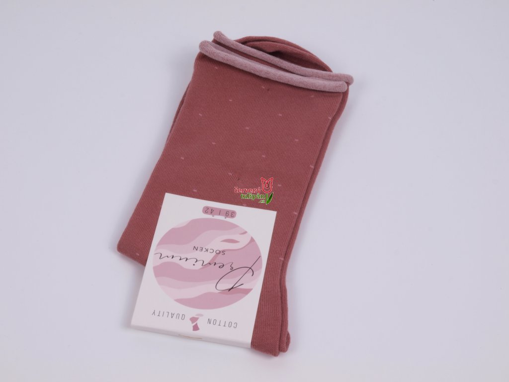 Ponožky DE 34350 se zdravotním nevírajícím ruličkovým lemem cihlové s puntíky