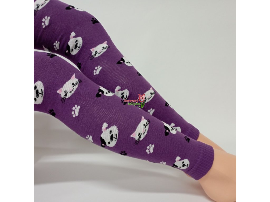 České legíny kamaše punčocháče bez ťapek TREPON OUŠKO fialové s pejsky a kočičkami