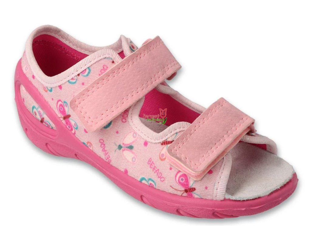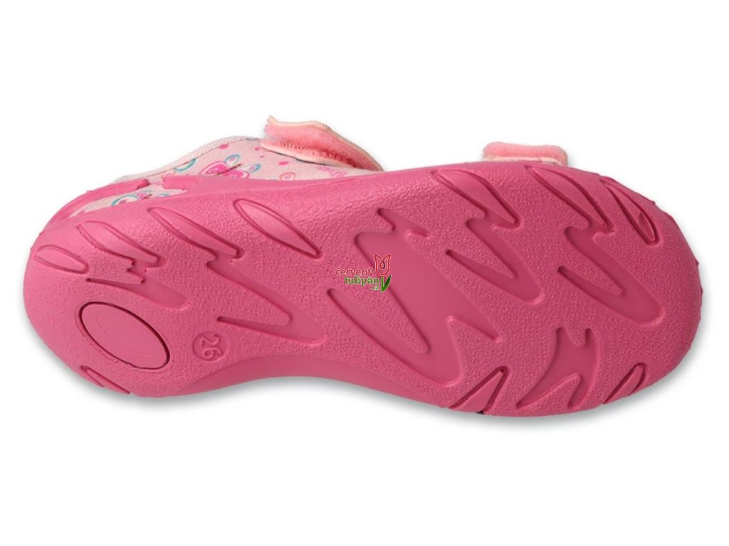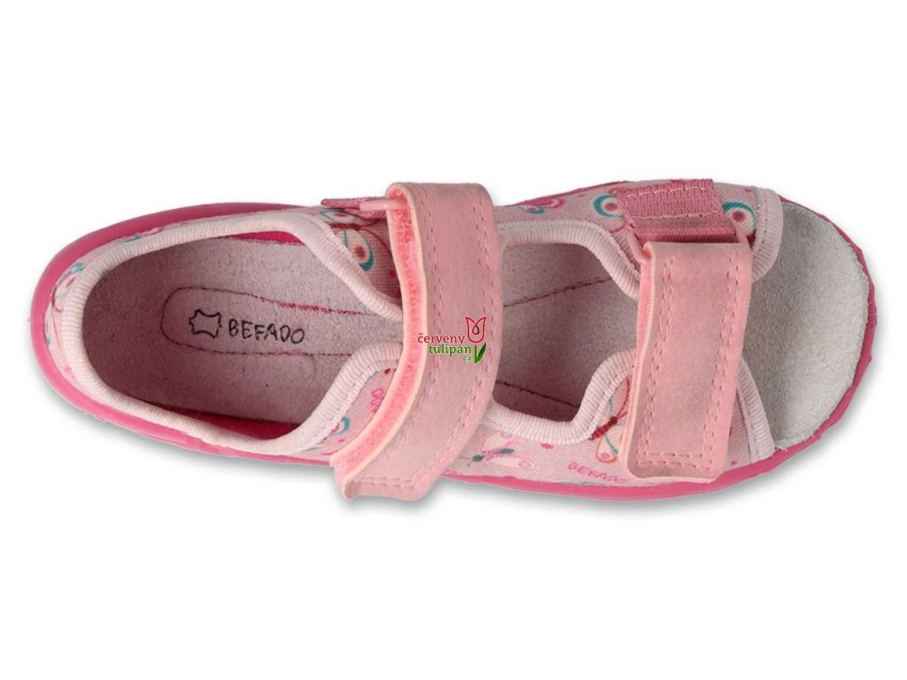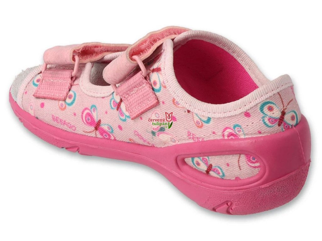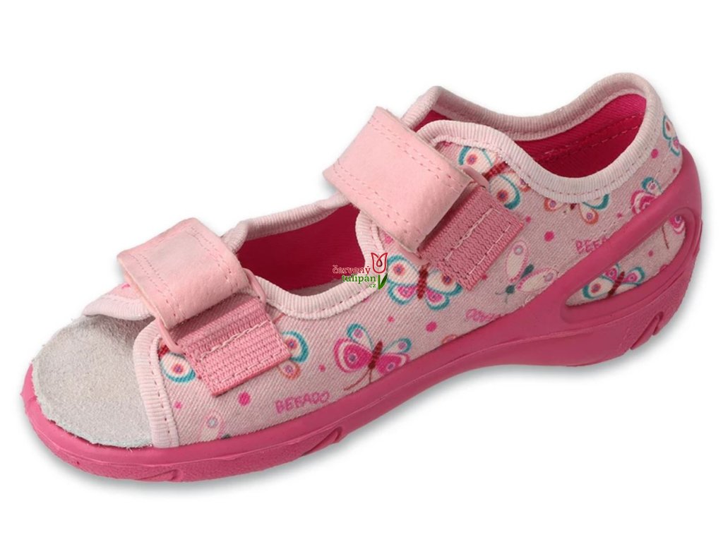 Bačkory papuče sandálky Befado 064X005 růžové s motýlky, s koženou stélkou