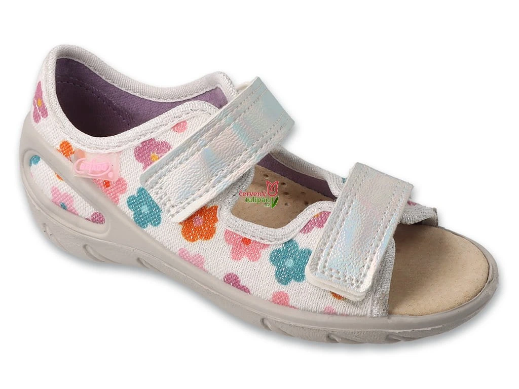 Sandálky Befado Sunny 063X027 s kvítky, s koženou stélkou