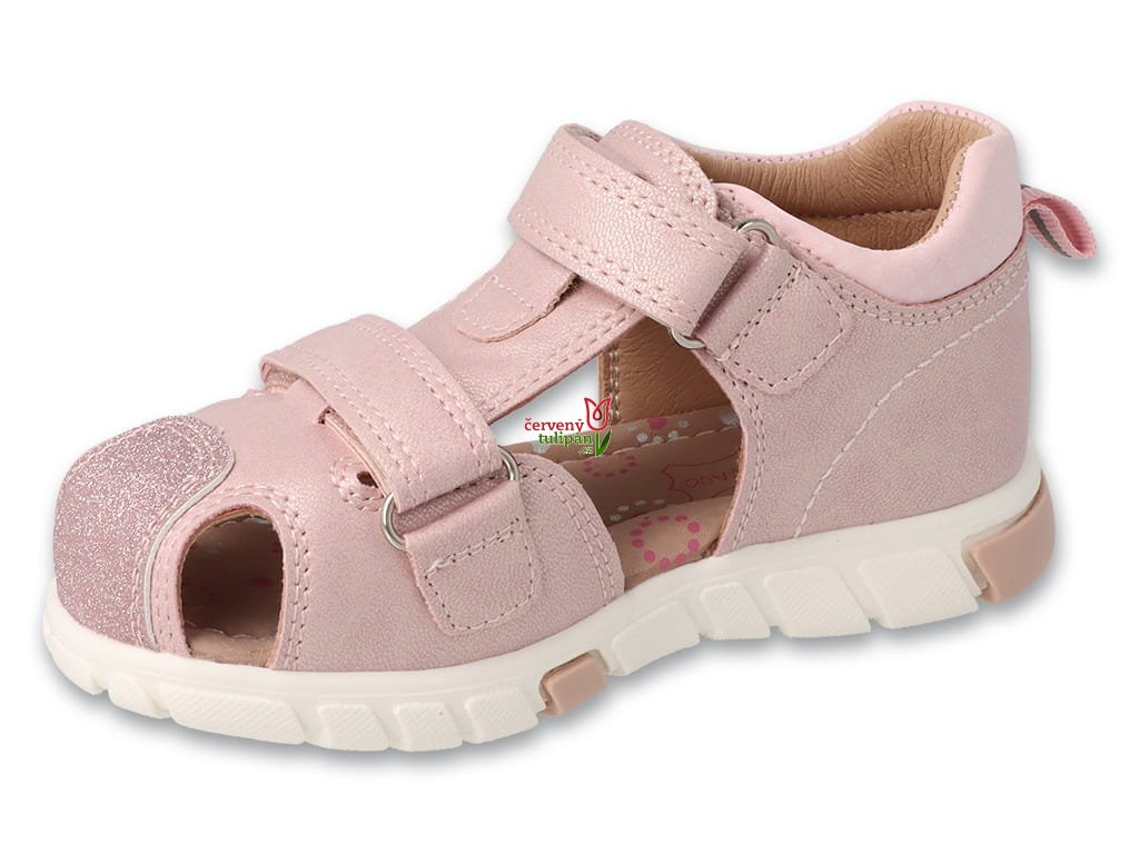 Sandály mají koženou, hygienickou stélku s antialergenními vlastnostmi, která zvyšuje pohodlí při používání. Svršek je vyroben z vysoce kvalitní, pružné, měkké a snadno udržovatelné imitace kůže. Funkční zapínání na suchý zip navíc umožňuje nastavení a přizpůsobení noze. Měkký a k pokožce šetrný vnitřek boty zabraňuje oděrkám. Mírně vyztužená a zvýšená pata zaručuje správnou stabilizaci celého těla dítěte. Uzavřená přední část boty chrání malé prsty a podrážka tlumí nárazy.