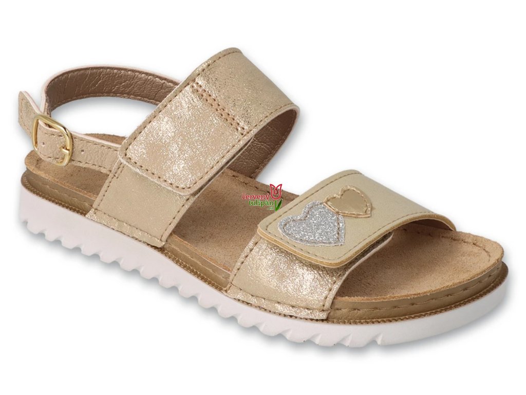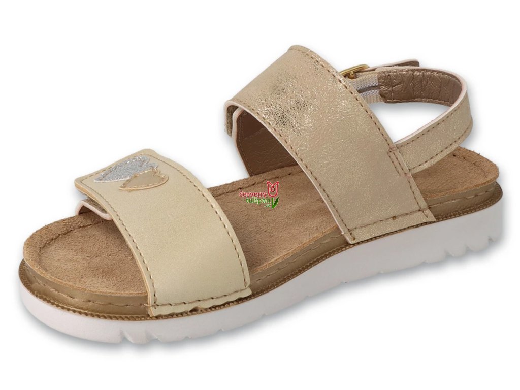 Sandály Befado Cute 062Y002 zlaté se srdíčkem, s koženou stélkou