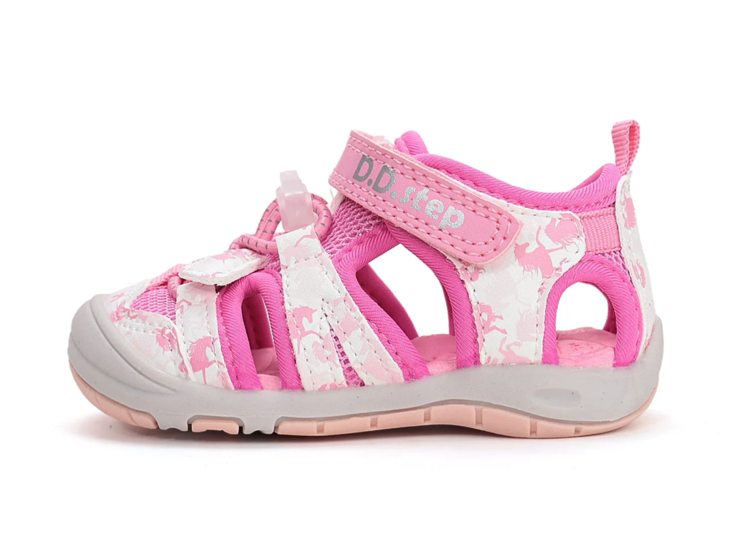 Sportovní obuv sandály D.D. step G065-61146D růžovobílé s jednorožci lehké flexibilní rychleschnoucí