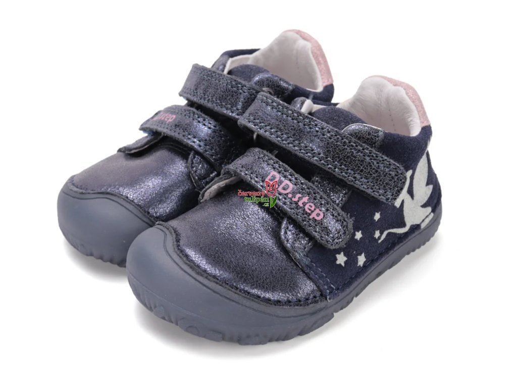 Celoročné topánky obuv D.D. step kožené BAREFOOT S073-52165 tmavomodré metalic s vílou