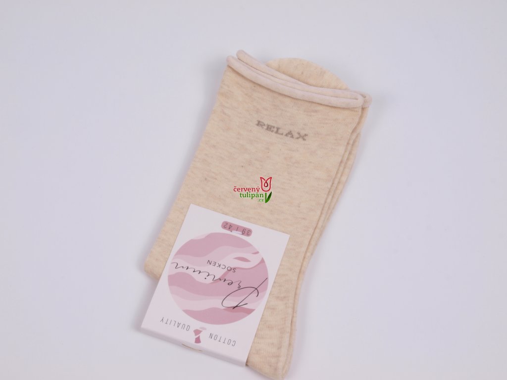 Ponožky DE 34350 so zdravotným nevierajúcim ruličkovým lemom béžovej RELAX