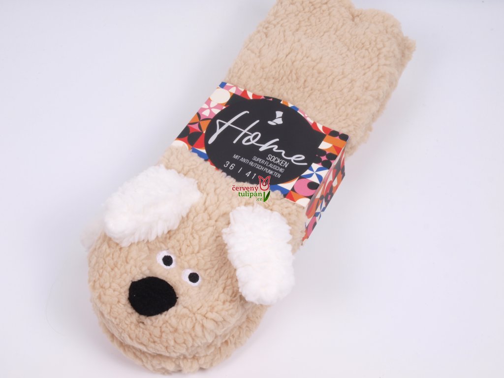 Teplé domáce ponožky DE 71899 s protišmykom ABS béžový psík