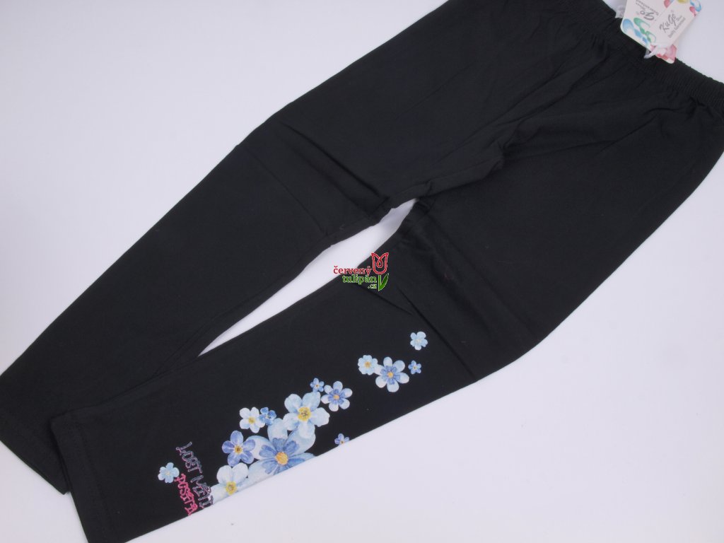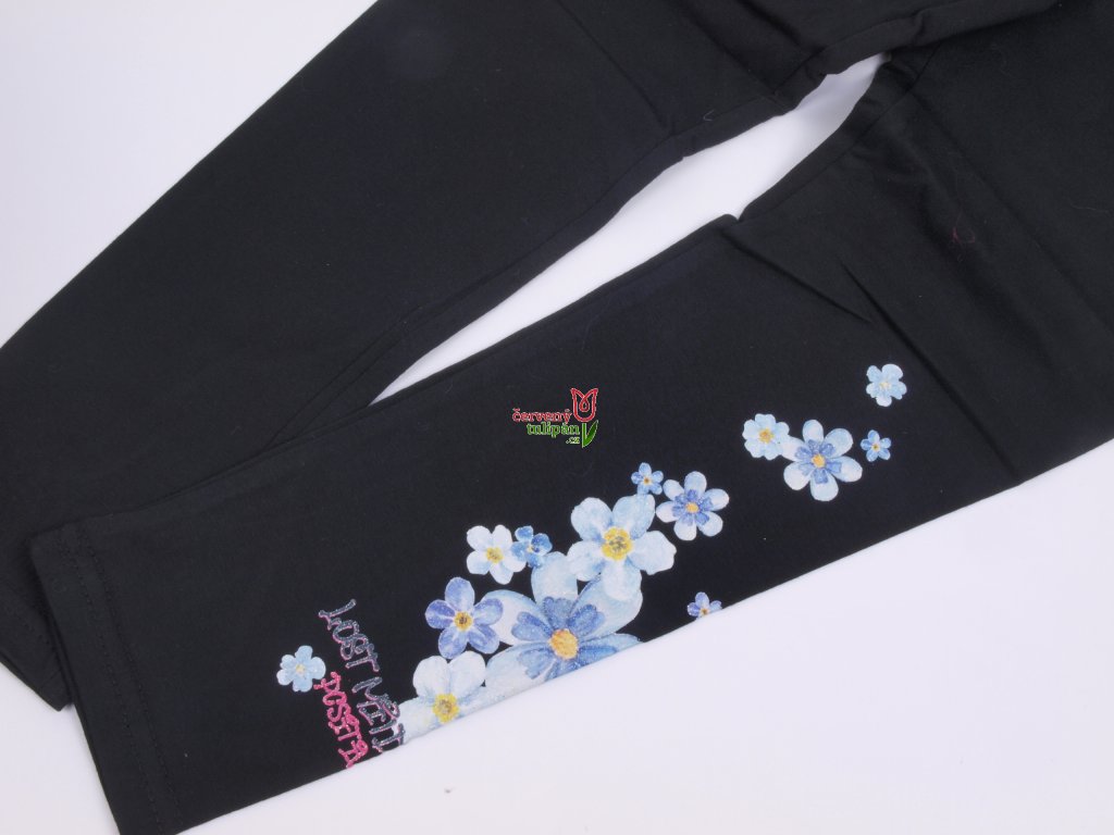 Dievčenské legíny elasťáky Kugo BL2388 čierne s kvetmi