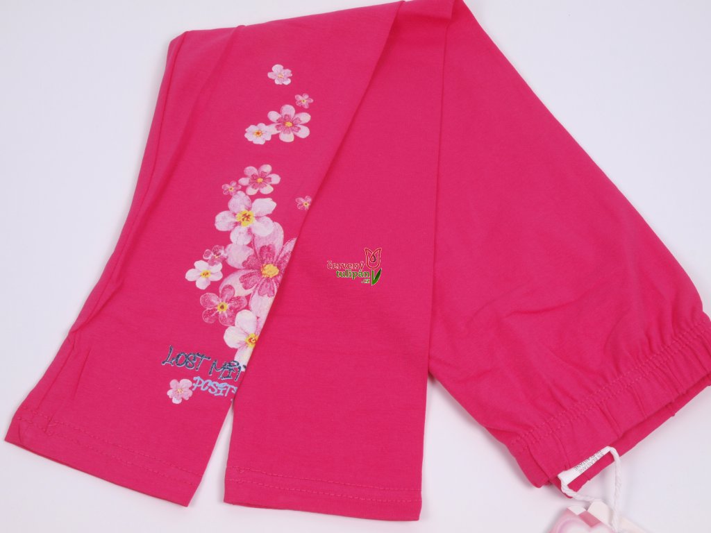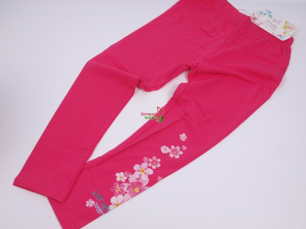Dievčenské legíny elasťáky Kugo BL2388 ružové s kvetmi