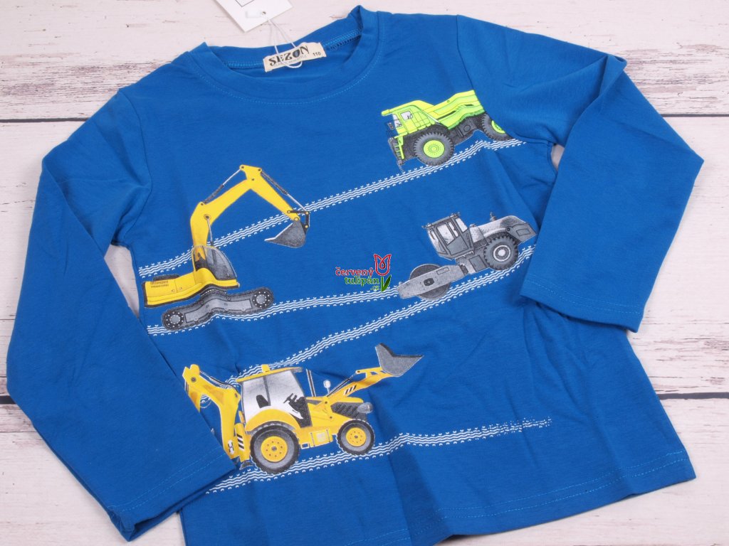 Triko Sezon L803 dlouhý rukáv modré s bagrem a stavebními stroji